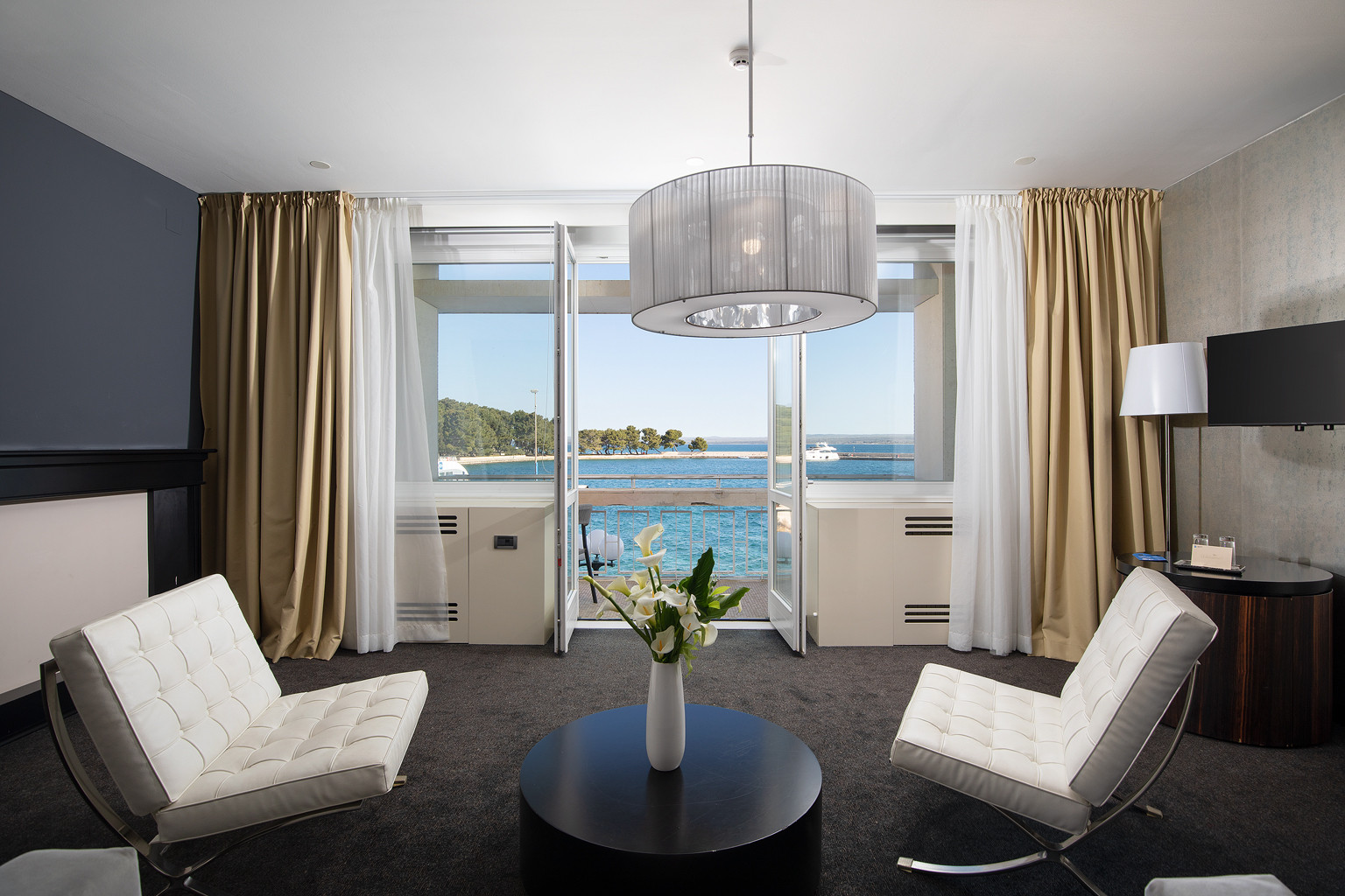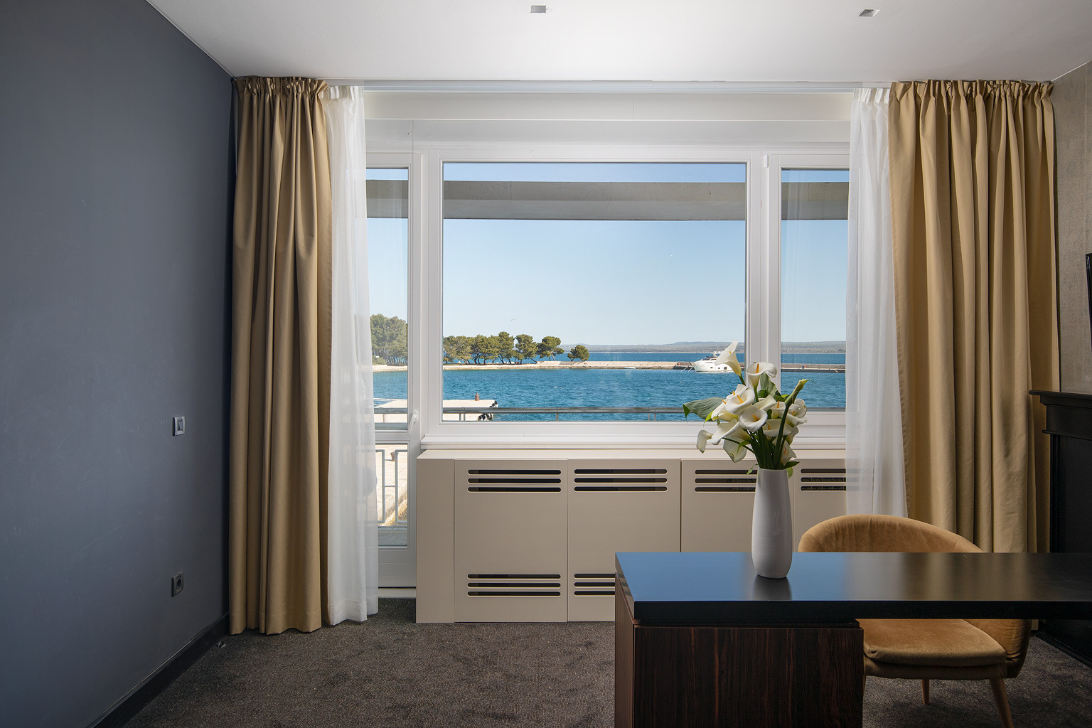 Die Zimmer mit Meerblick bieten eine spektakuläre Aussicht auf den Hafen von Veliki Brijun, auf das Kanal von Fažana und das Innenland von Istrien. Die Umarmung des kristall-blauen Meeres und das Himmelsblau bietet dem Gast eine Pause vom Stress und die Rückkehr zur Natur.
