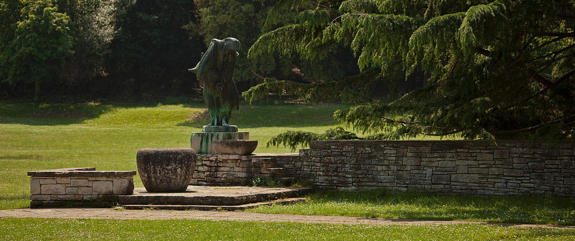 La escultura y el jardín conmemorativo también tienen la función de la fuente: la escultura de bronce de Frano Kršinić muestra a una mujer con un fuelle, desde el cual el agua fluye a un cuenco de piedra. Se suponía que el monumento crearía un efecto de luz: dentro de la escalera de piedra de la fuente de vidrio cerrada de forma piramidal hay reflectores incorporados que iluminan gotitas de agua dispersas que como resultado dan un arco iris.