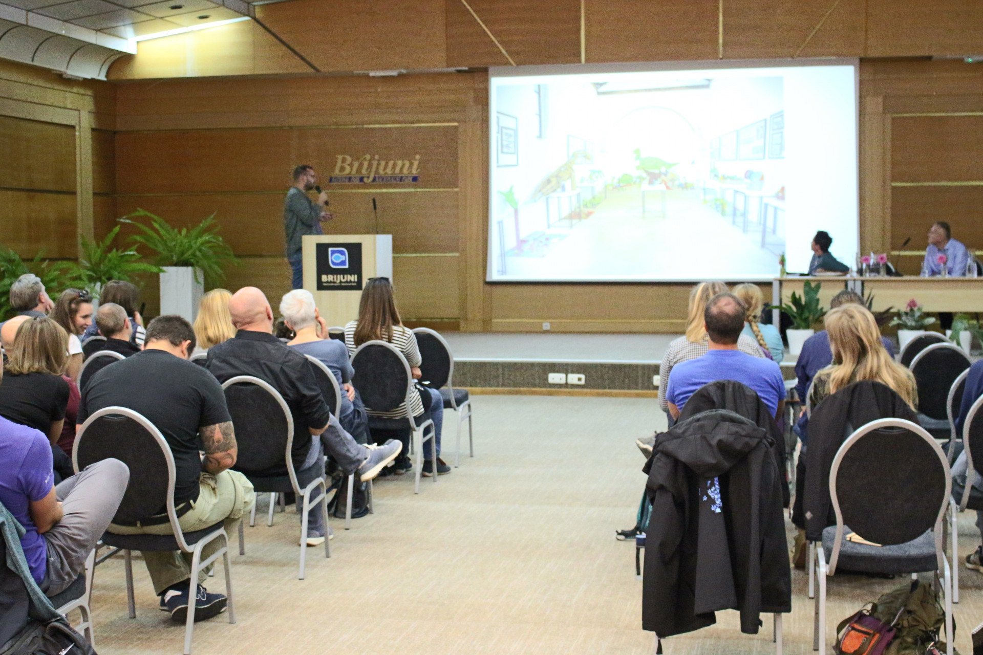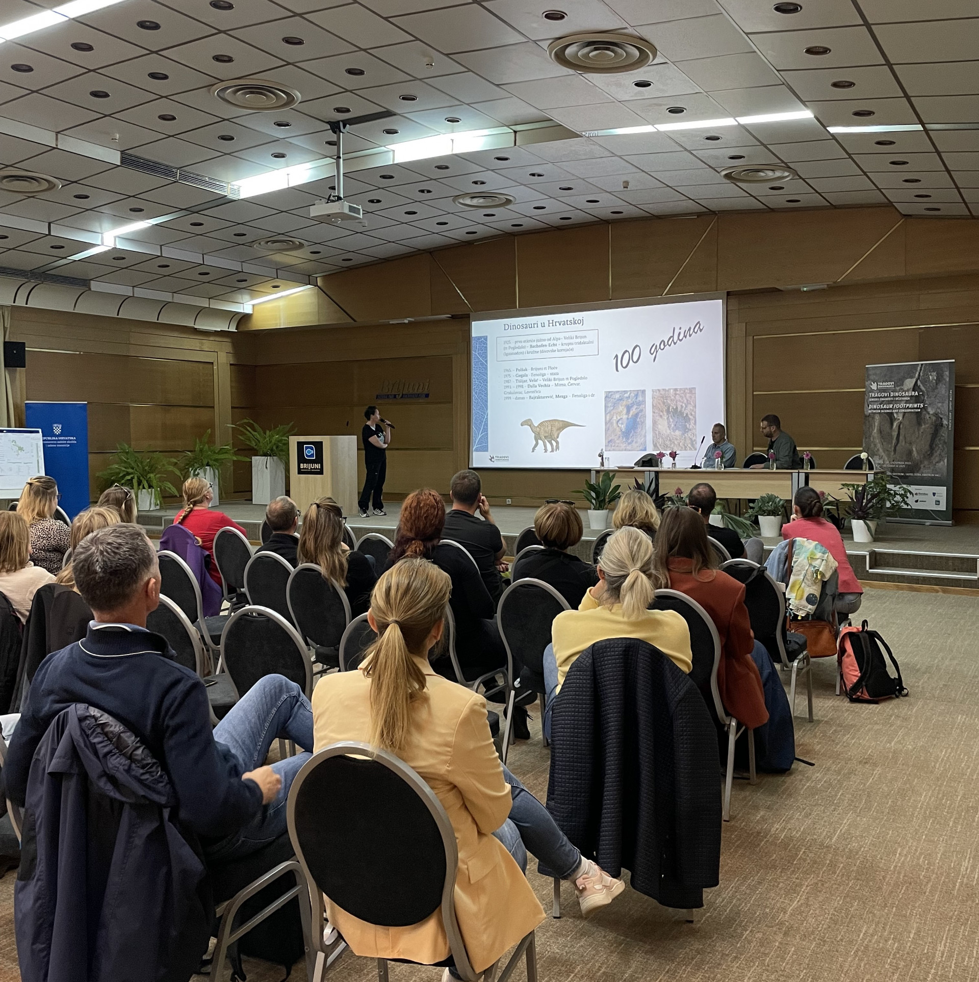 Krajem prvog dana održana je vrlo zanimljiva panel rasprava o budućnosti hrvatskih nalazišta, na kojoj su sudionici dobili odgovore na brojna pitanja, poput toga kako prepoznati fosilne otiske tragova dinosaura, kome ih prijaviti, trebaju li se zaštititi in situ ili ex situ (ili kombinacijom obaju pristupa), koje su metode učinkovitije za zaštitu fosila i druge geobaštine od sve većeg antropogenog pritiska, osobito uzrokovanog gradnjom, te na slična pitanja.