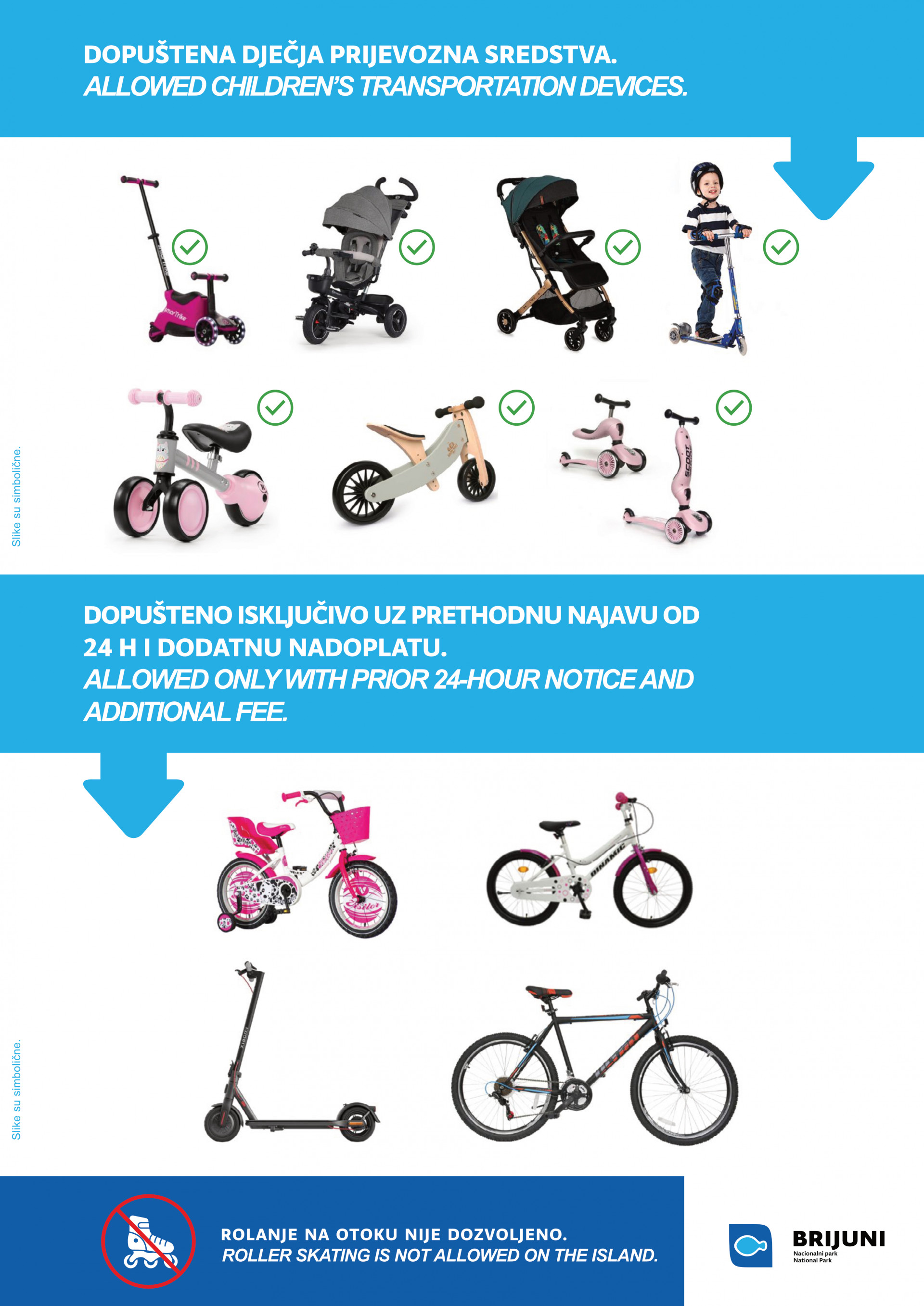 - Prijevoz dječjih bicikala na otok Veliki Brijun: 40,00 €