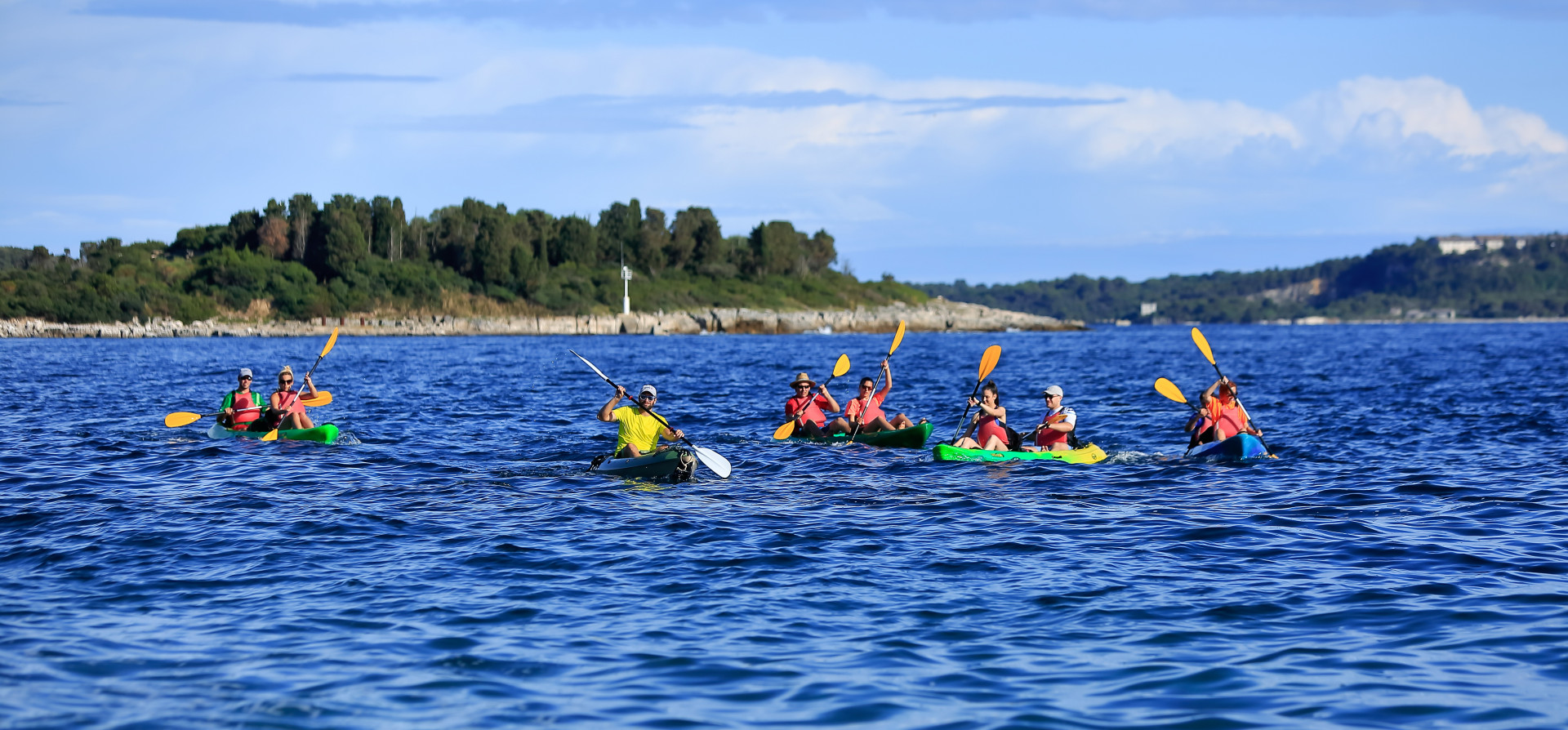 L’escursione guidata in kayak offre l’indimenticabile sensazione di pagaiare per l’area marina protetta del Parco nazionale delle Isole Brioni.