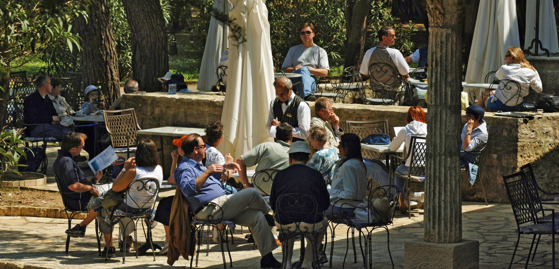 Guardatevi intorno e osservate la perfetta armonia del posto che vi circonda. Le colonne dell'epoca romana arricchiscono visivamente la terrazza, mentre la diversità del mondo vegetale e animale completa l'esperienza della pausa caffè nel parco nazionale. Fate una breve pausa e riprendetevi nella Školjka.